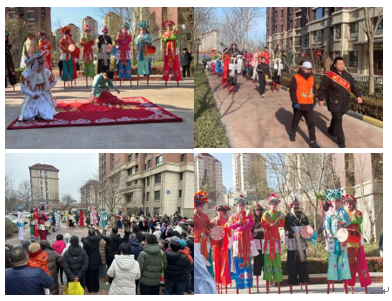 非遗高跷队的登场,更添几分烟火气息。艺人们身着五彩戏服,脚踏木跷如履平地,花鼓翻飞、彩扇翩跹,边舞边与围观的业主互动,或是拱手送福,或是递上糖果。大人孩童追着队伍嬉闹,老人们坐在一旁含笑观赏,传统民俗的魅力,在这喧腾热闹中,深深印刻在邻里心间。